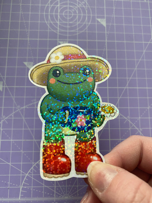 Garden Frog holographic vinyl sticker (large)